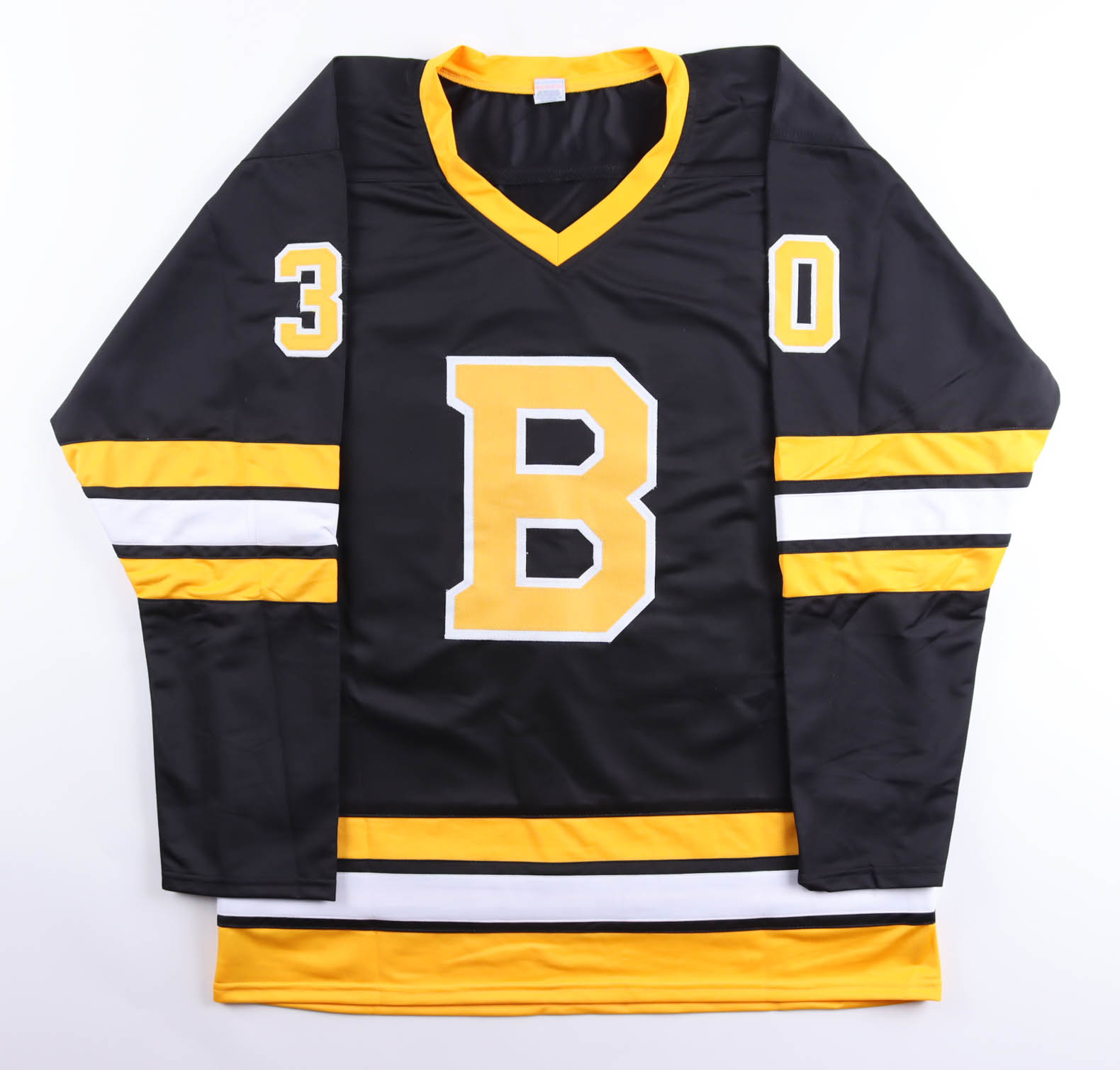 Custom jersey. Everything is sewn on, size XL. Hand-signed and inscribed by Gerry Cheevers (HOF).