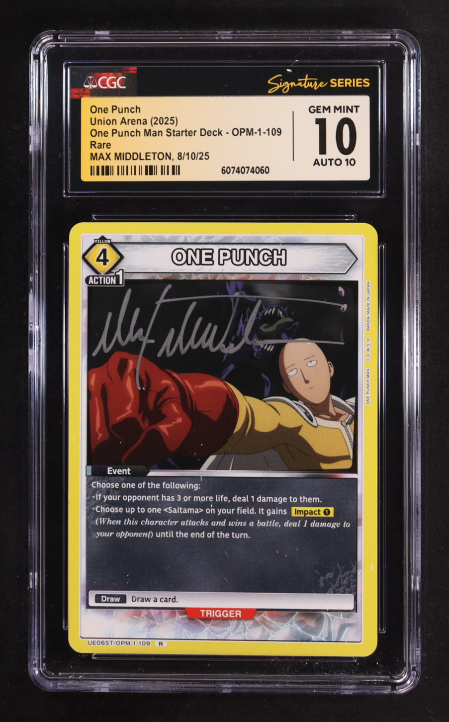 Max Middleton Signed 2025 Union Arena TCG One Punch Man Starter Deck #UE06STOPM1109 ONE PUNCH (CGC 10 | Auto 10)