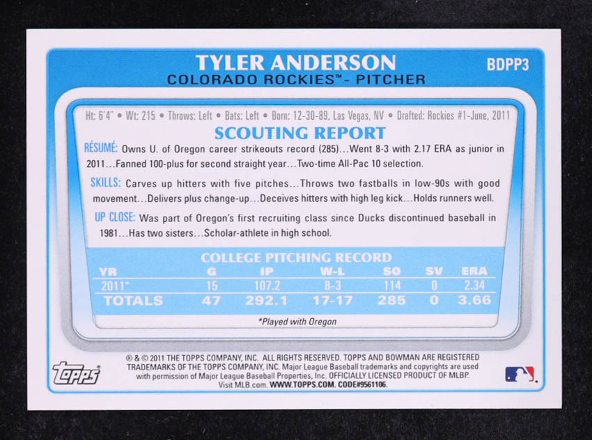 Tyler Anderson 2011 Bowman Draft Prospects Autographs #BDPP3 RC