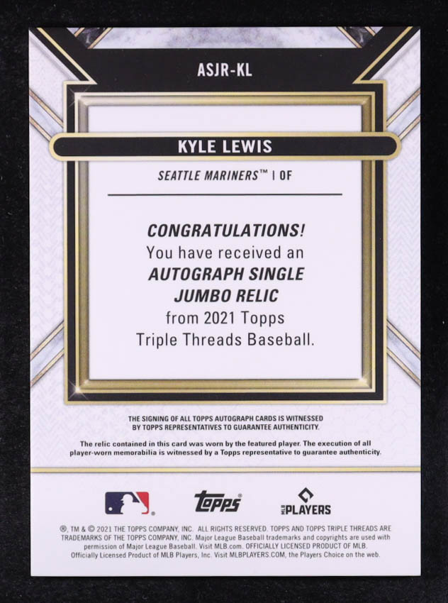 Kyle Lewis 2021 Topps Triple Threads Single Jumbo Relic Autographs Gold #ASJRKL #13/25