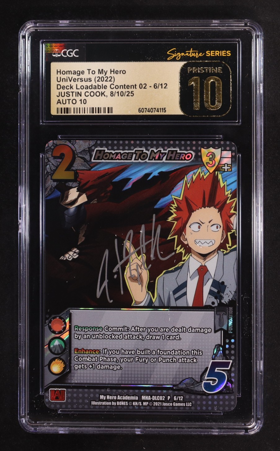 Justin Cook Signed 2022 UniVersus My Hero Academia Crimson Rampage DLC #6 Homage To My Hero (CGC 10 | Pristine Black Label | Auto 10)
