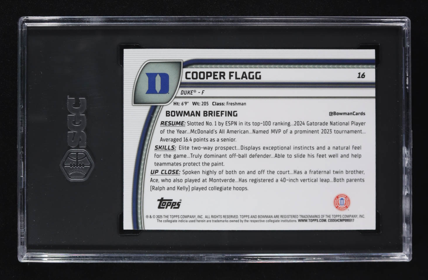 Cooper Flagg 2024-25 Bowman Chrome University #16 RC (SGC 9.5)