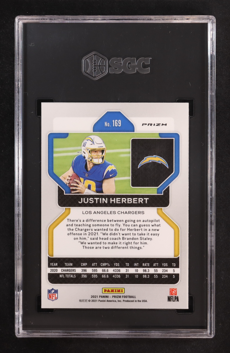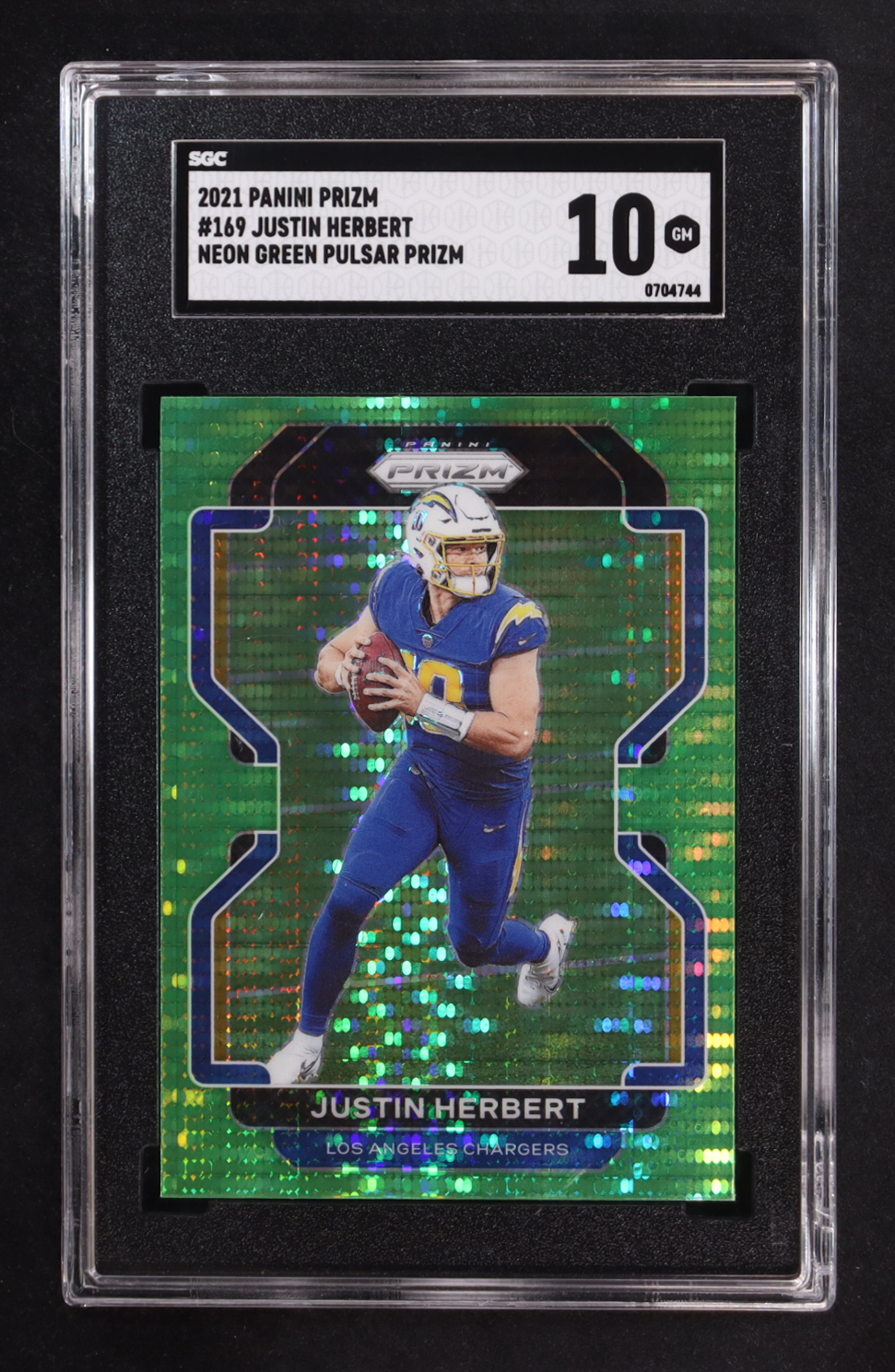 Justin Herbert 2021 Panini Prizm Neon Green Pulsar #169 (SGC 10)