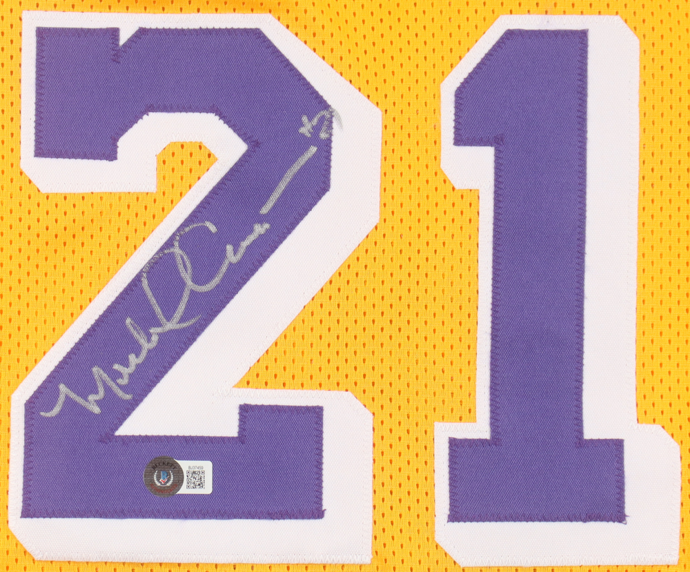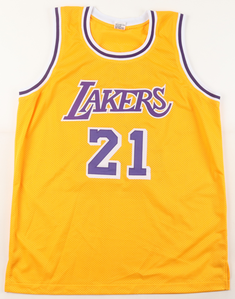 Custom jersey with everything sewn on, size XL. Hand-signed by Michael Cooper (HOF).