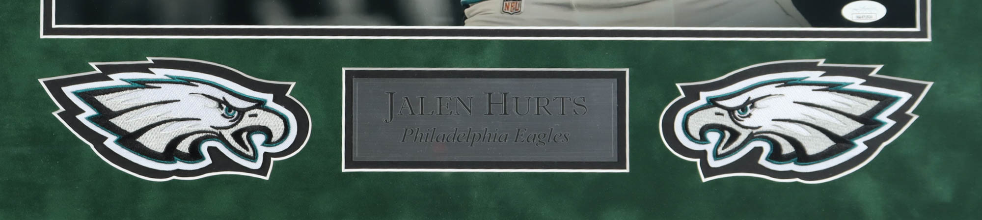 Jalen Hurts Signed Eagles Custom Framed Photo Display with Name & Team Plaque (JSA)