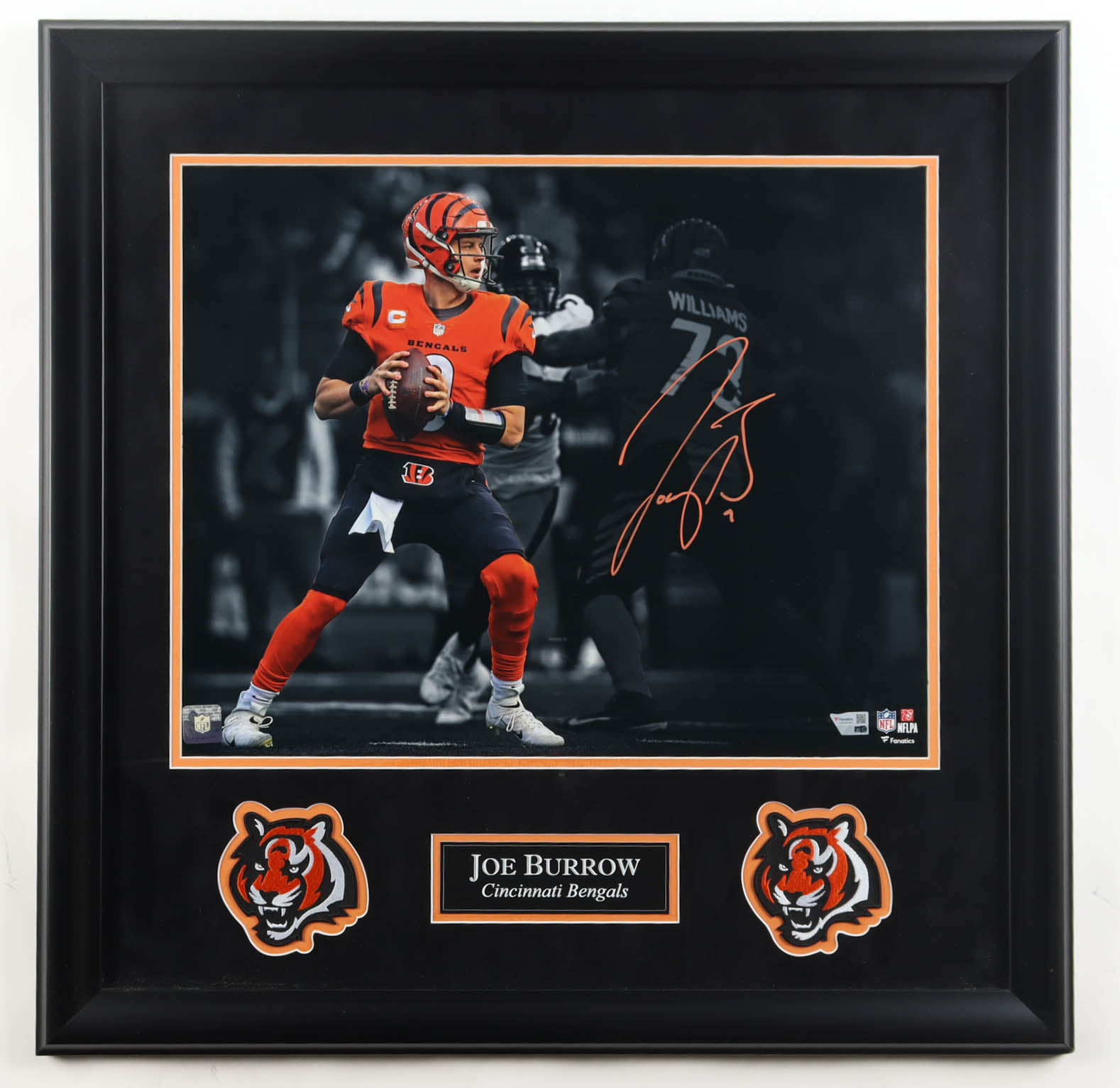 Joe Burrow Signed Bengals Custom Framed Photo Display with Name & Team Plaque (Fanatics)