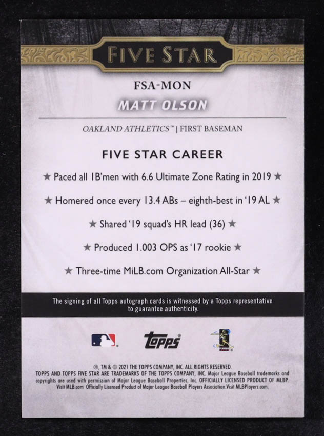 Matt Olson 2021 Topps Five Star Autographs #FSAMON