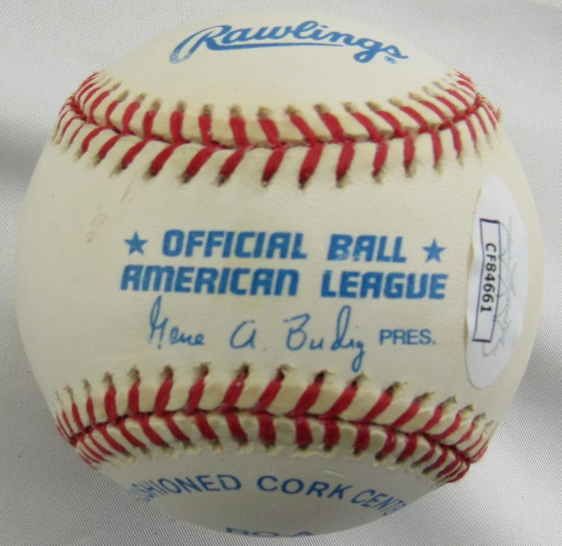 Rawlings Official American League Baseball. Hand-signed by Robin Yount (Milwaukee Brewers, HOF). Please note, the ball is naturally toned.