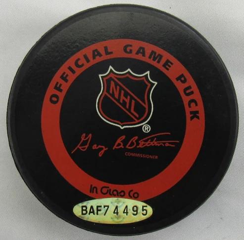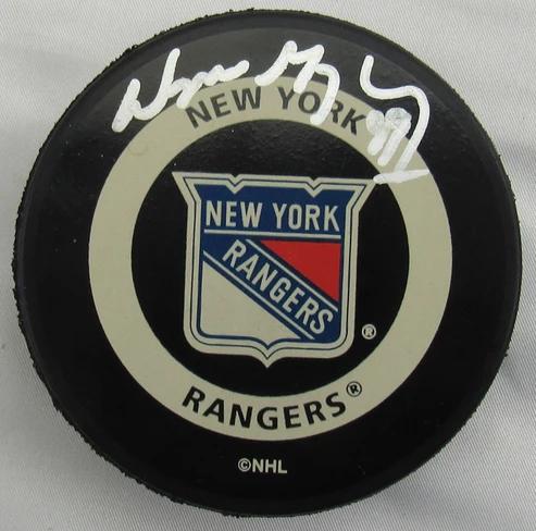 New York Rangers logo hockey puck has been hand-signed by Wayne Gretzky (HOF).