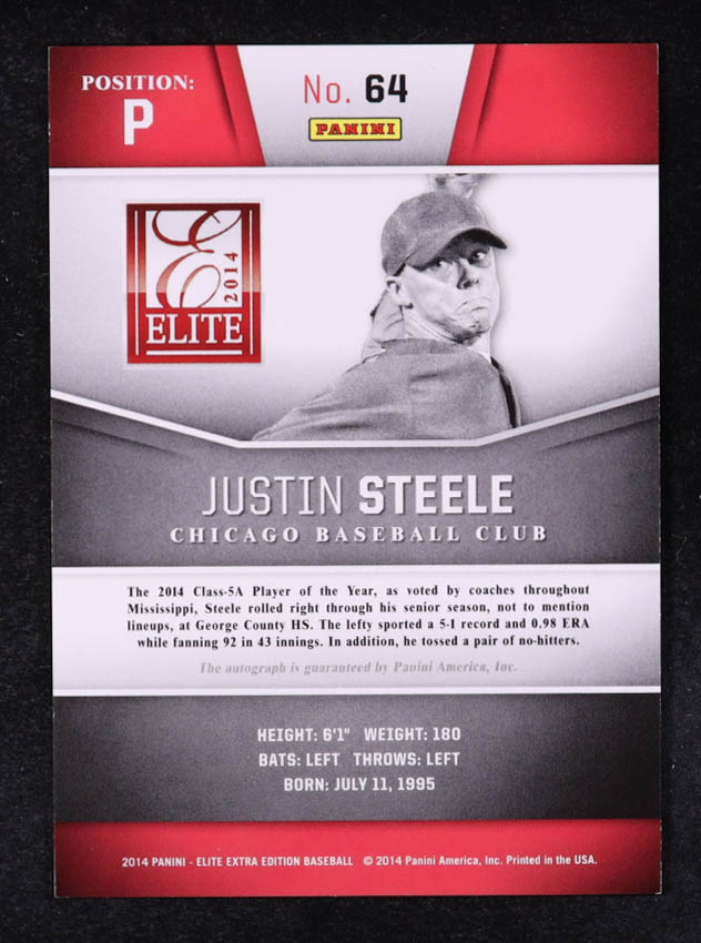 Justin Steele 2014 Elite Extra Edition Prospects Signatures Red Ink #64 #21/25 RC