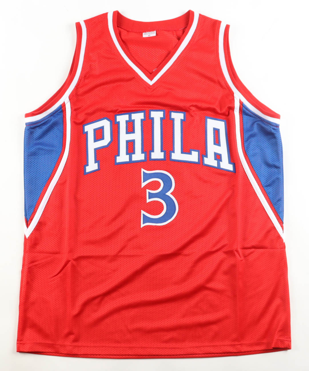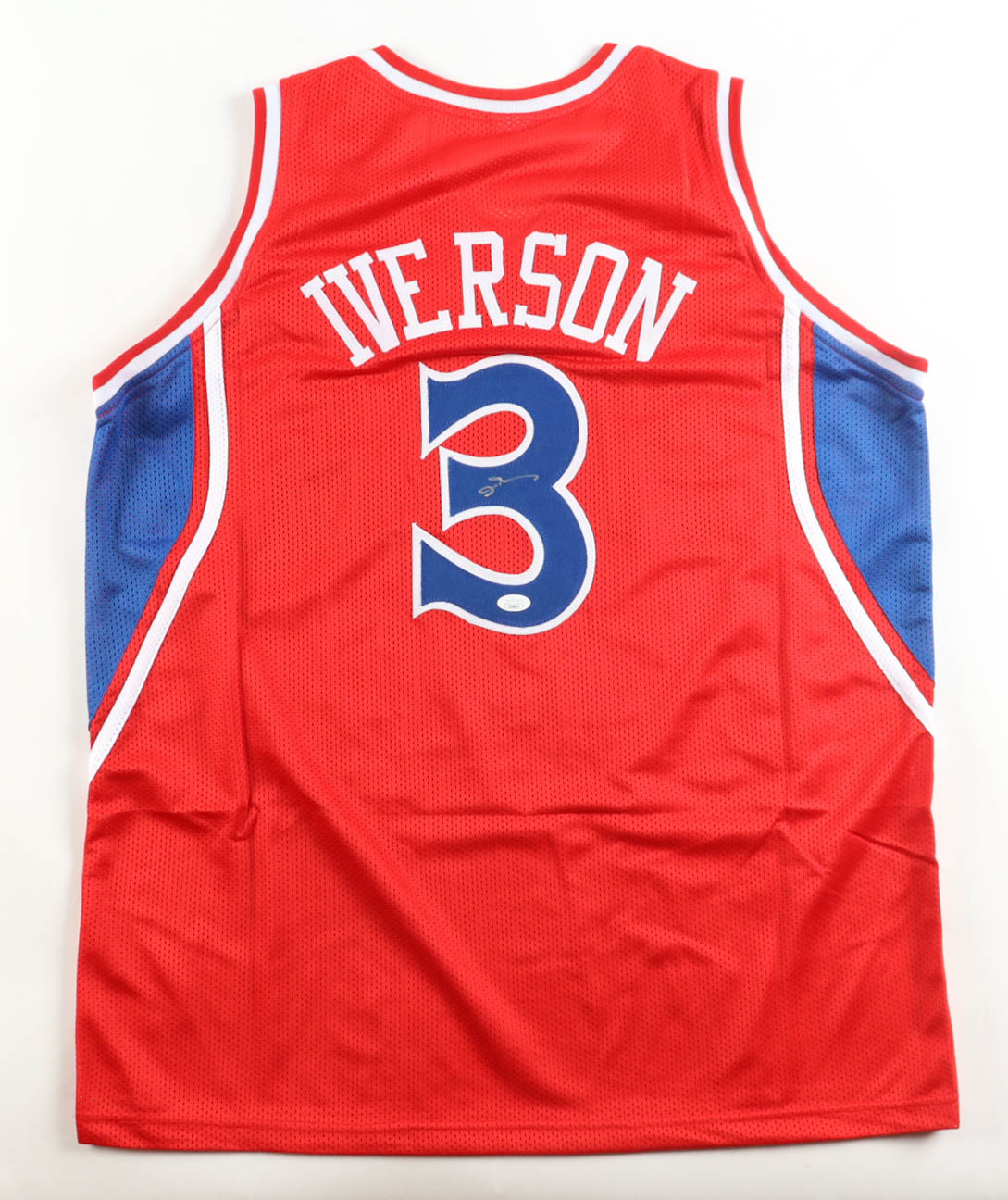 Custom jersey with everything sewn on, size XL. Hand-signed by Allen Iverson (HOF).
