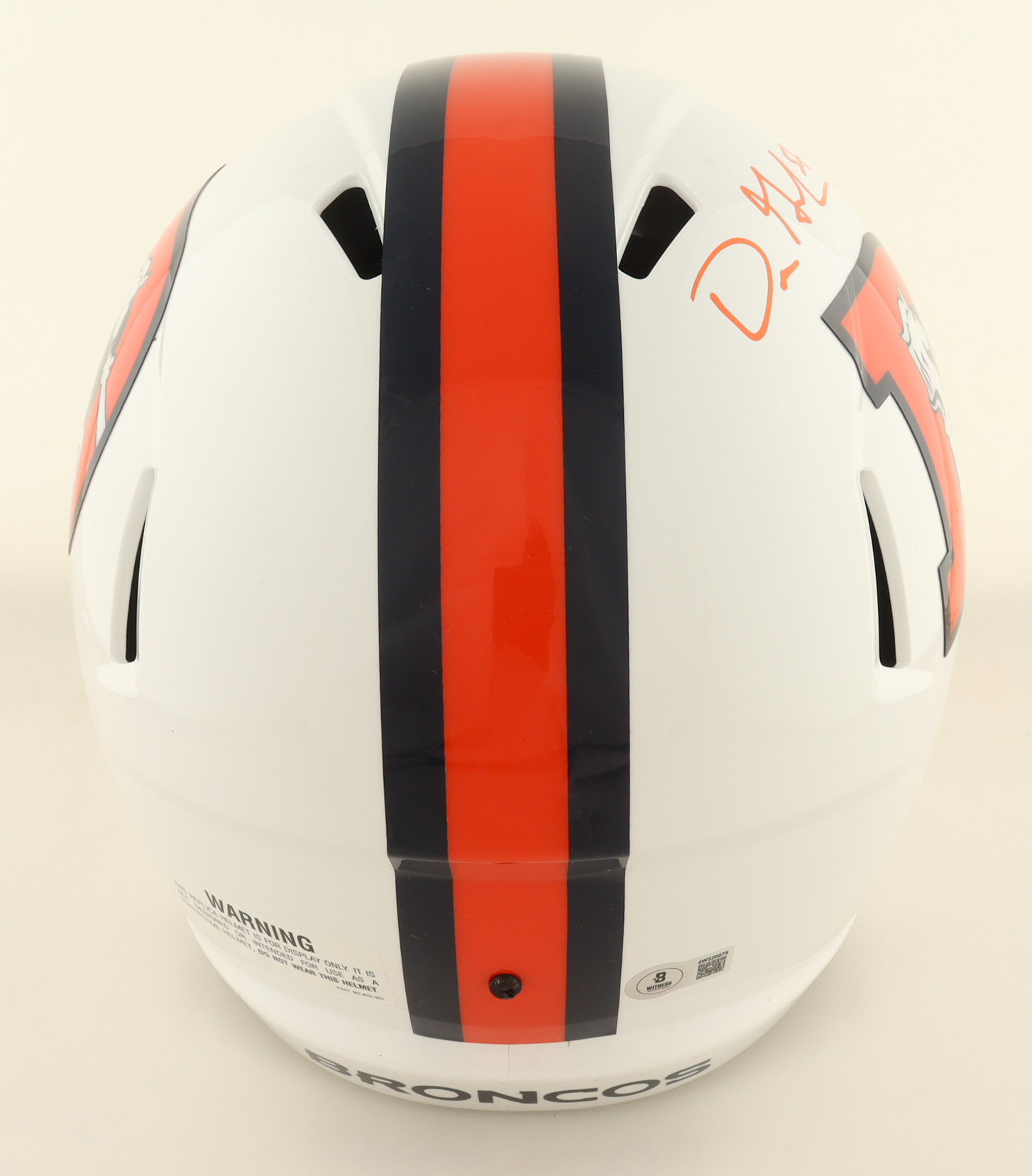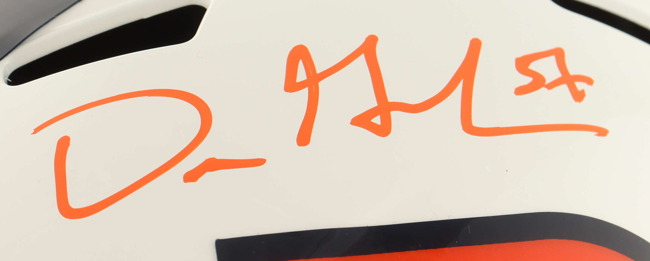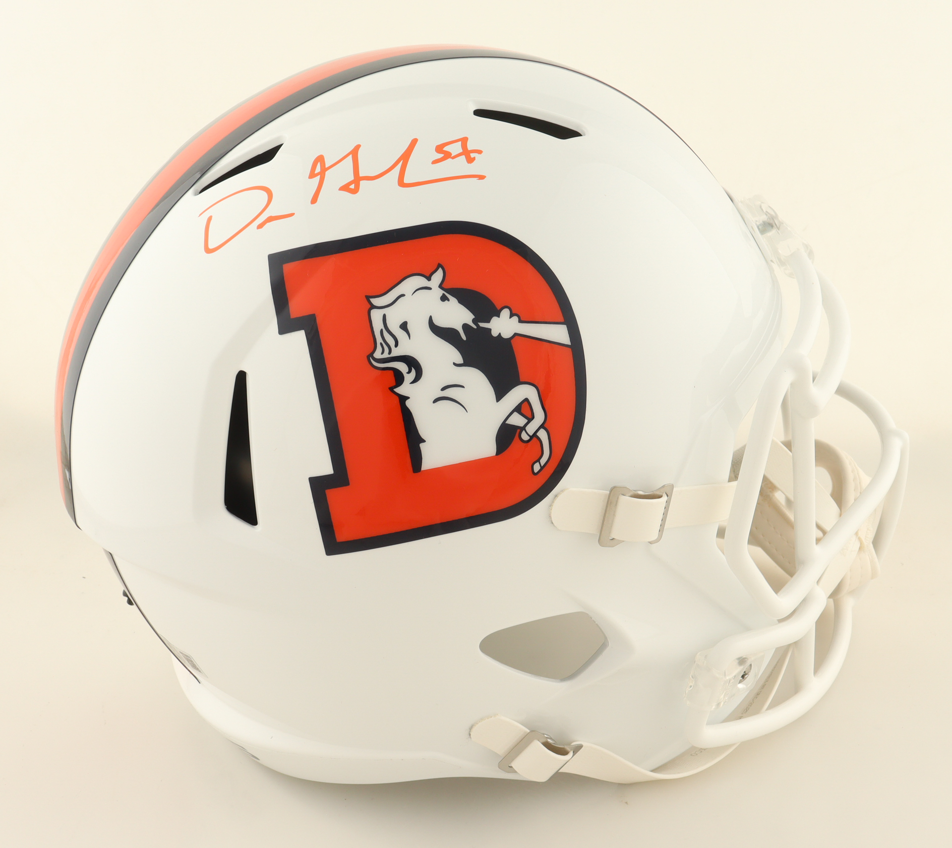 Riddell Denver Broncos full-size speed replica helmet. Hand-signed by Dre Greenlaw.