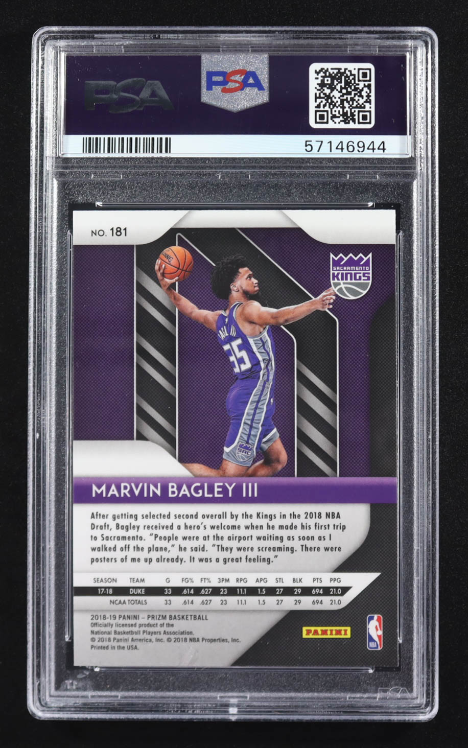Marvin Bagley III 2018-19 Panini Prizm #181 RC (PSA 10)