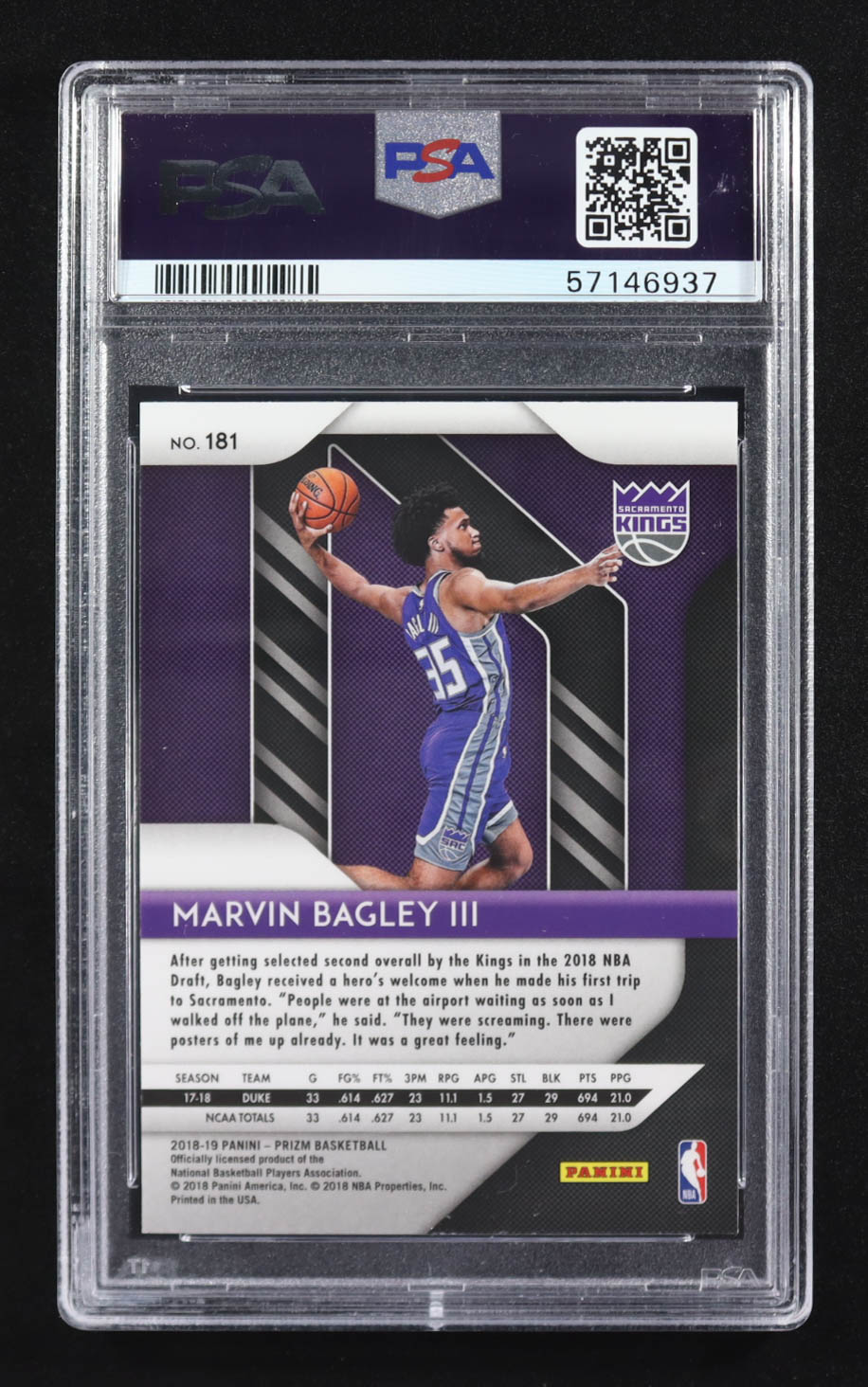 Marvin Bagley III 2018-19 Panini Prizm #181 RC (PSA 10)