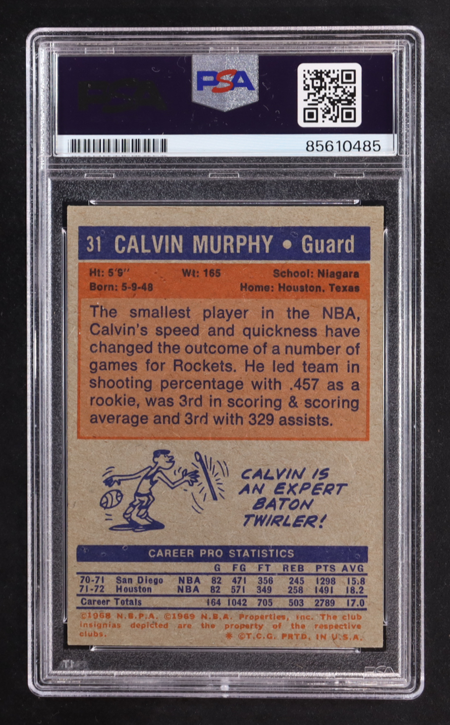 Calvin Murphy Signed 1968 Trading Card Inscribed "HOF '93" (PSA Encapsulated)
