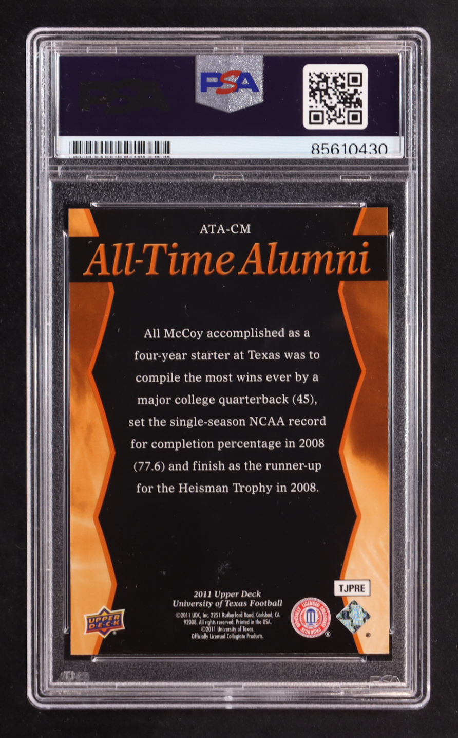 Colt McCoy Signed 2011 Upper Deck Texas All-Time Alumni #ATACM (PSA Encapsulated)