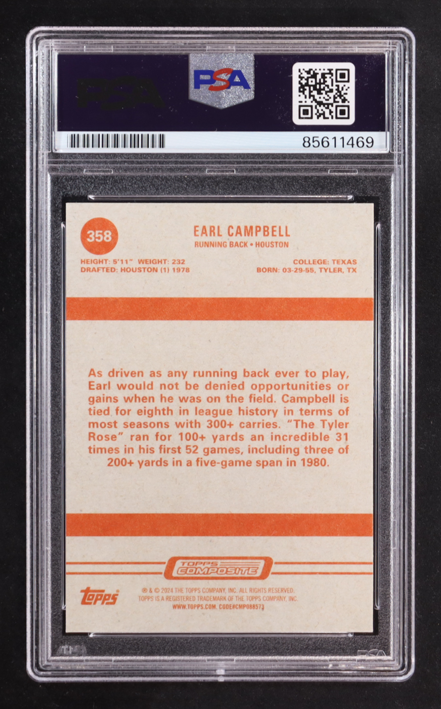 Earl Campbell Signed 2023 Topps Composite #358 Heritage (PSA Encapsulated)