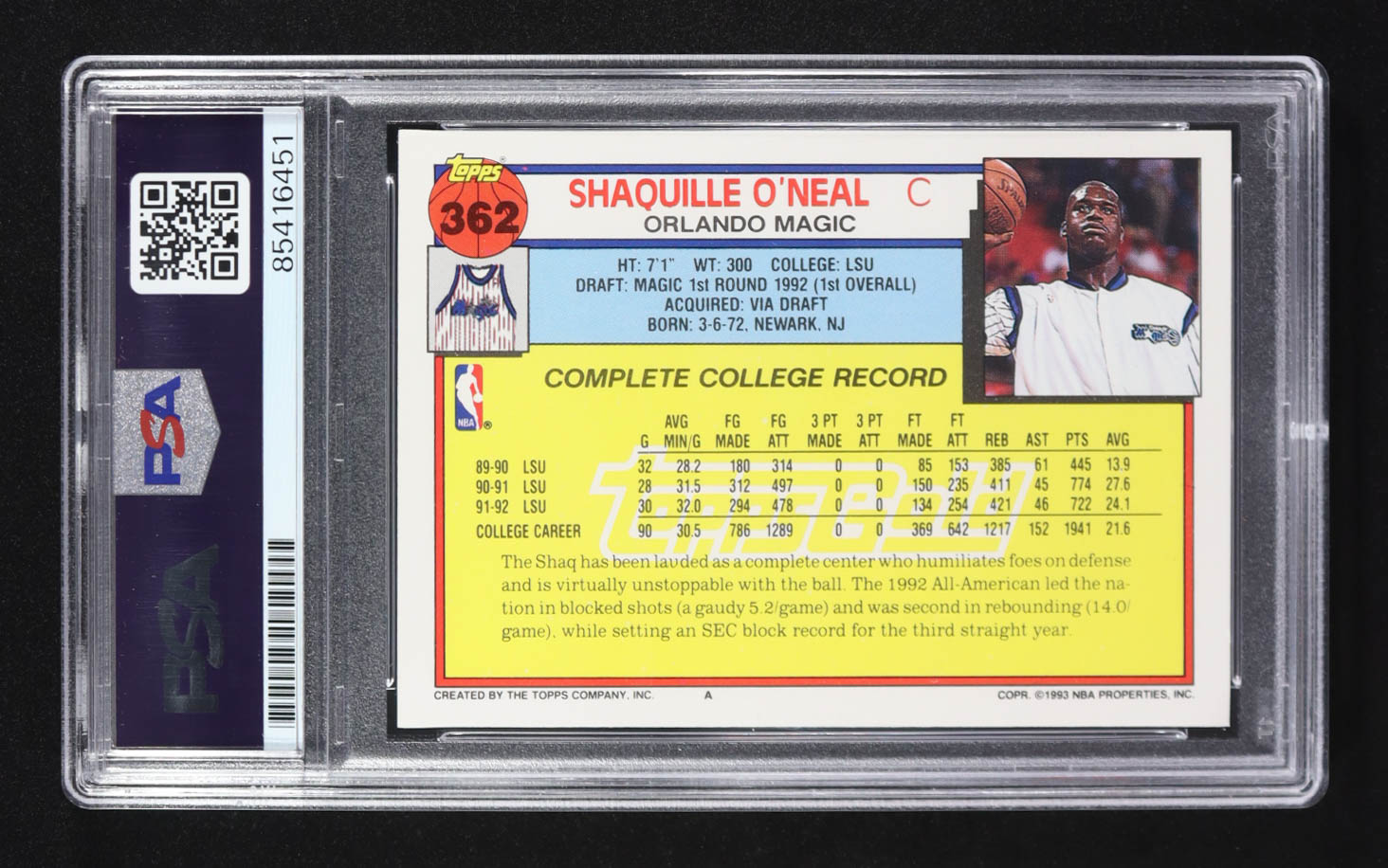 Shaquille O'Neal Signed 1992-93 Topps Gold #362 RC (PSA)
