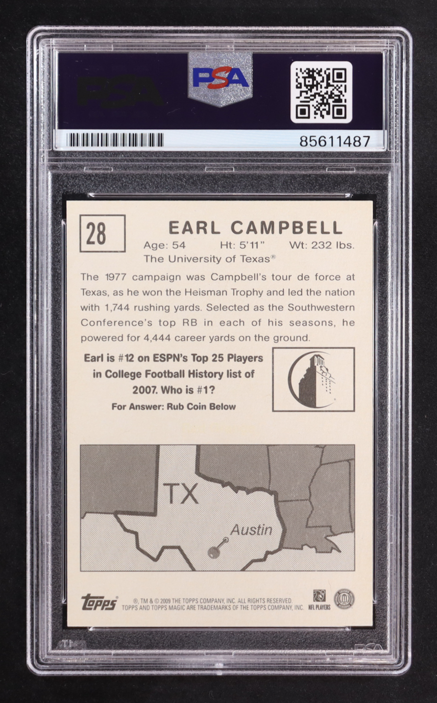 Earl Campbell Signed 2009 Topps Magic #28 (PSA Encapsulated)