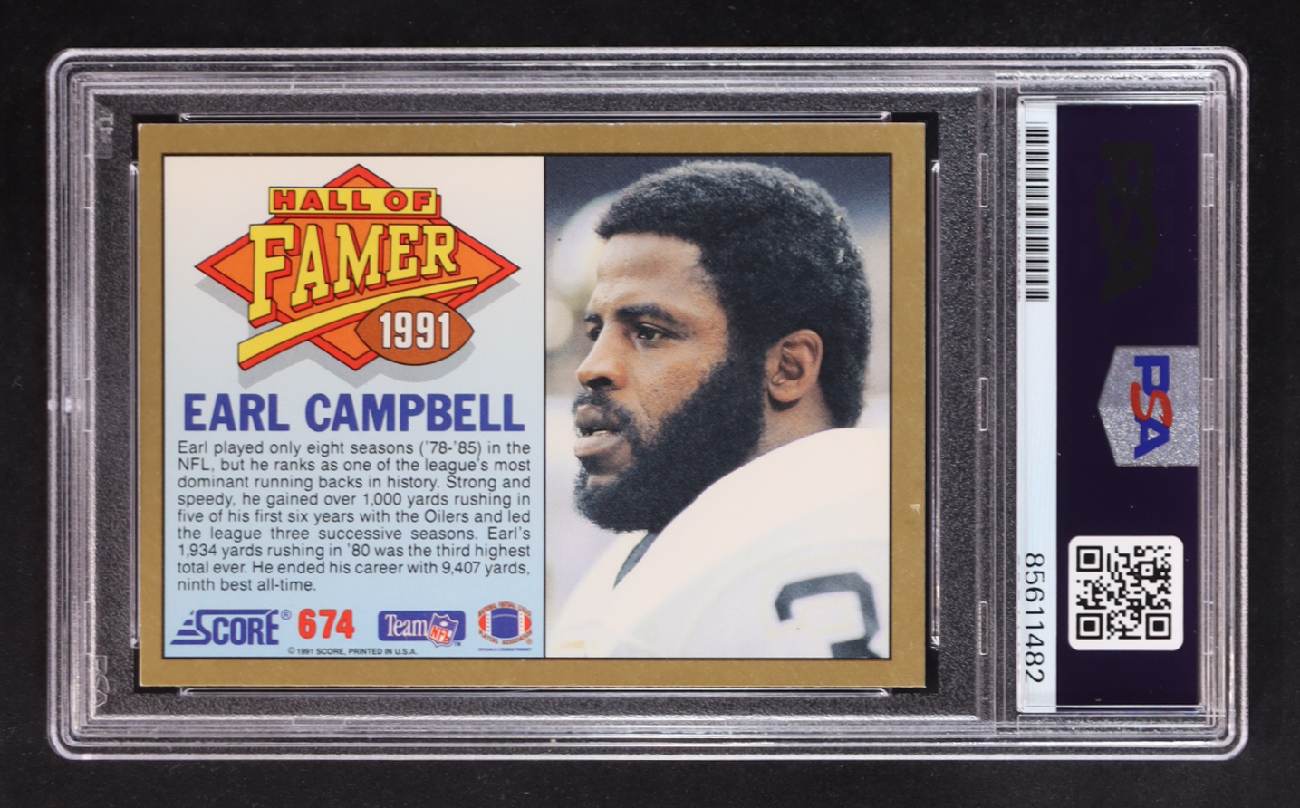 Earl Campbell Signed 1991 Score #674 HOF (PSA Encapsulated)