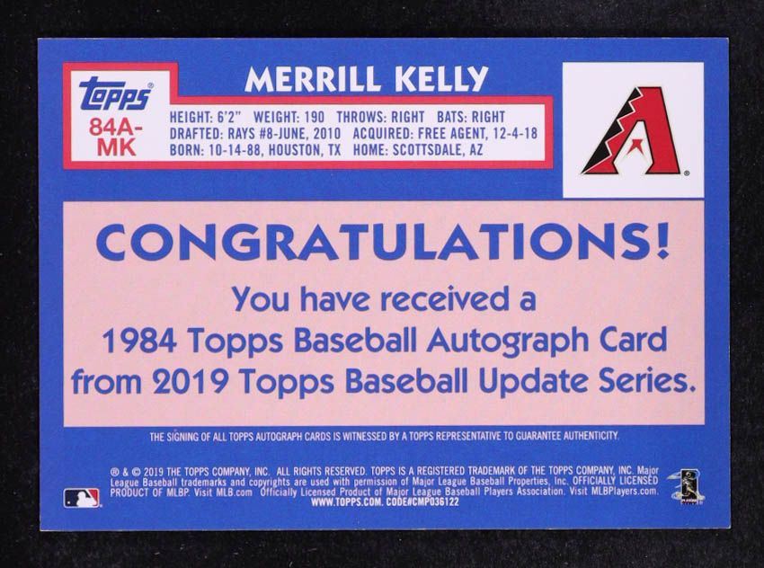 Merrill Kelly 2019 Topps Update '84 Topps Autographs #84AMK RC