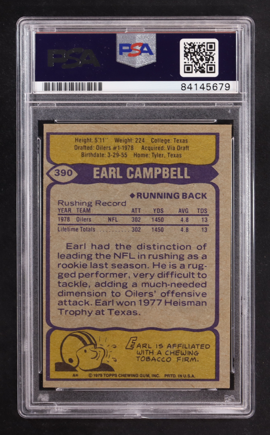 Earl Campbell Signed 1979 Topps #390 RC (PSA Encapsulated)