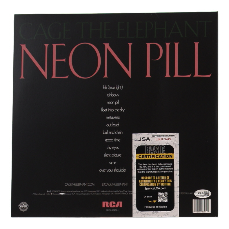 Cage The Elephant "Neon Pill" Vinyl Record Album Band-Signed by (6) with Matt Shultz, Brad Shultz, Nick Bockrath, Matthan Minster (JSA)