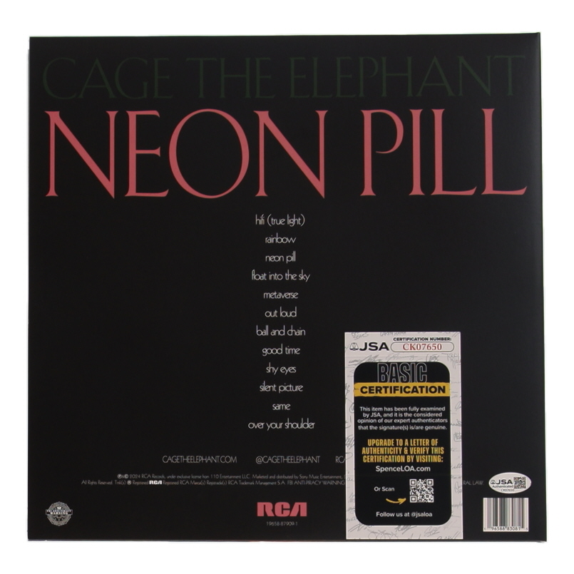 Cage The Elephant "Neon Pill" Vinyl Record Album Band-Signed by (6) with Matt Shultz, Brad Shultz, Nick Bockrath, Matthan Minster (JSA)