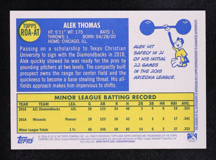 Alek Thomas 2019 Topps Heritage Minors Real One Autographs #ROAAT RC
