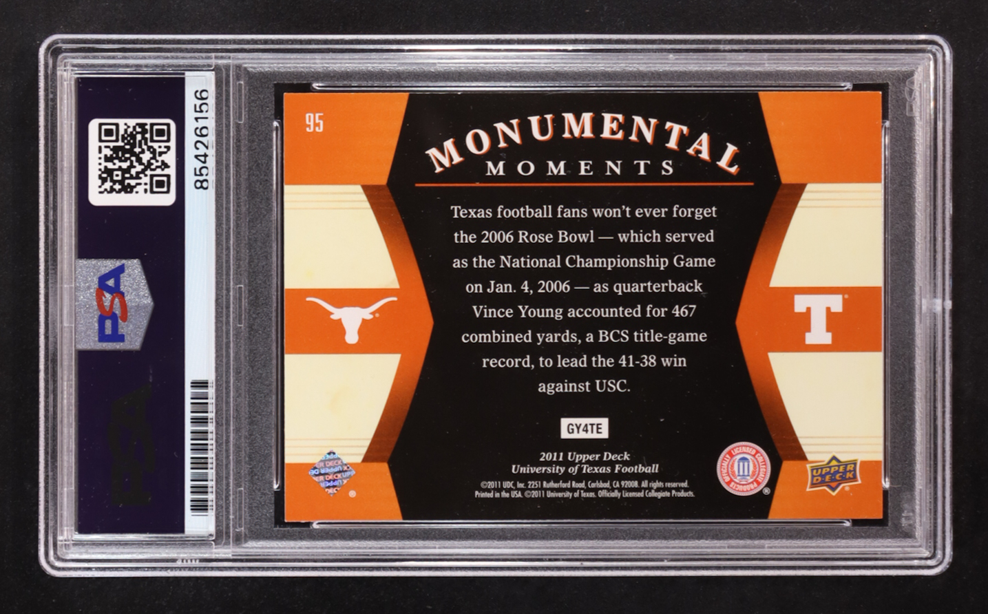 Vince Young Signed 2011 Upper Deck Texas #95 MM (PSA Encapsulated)