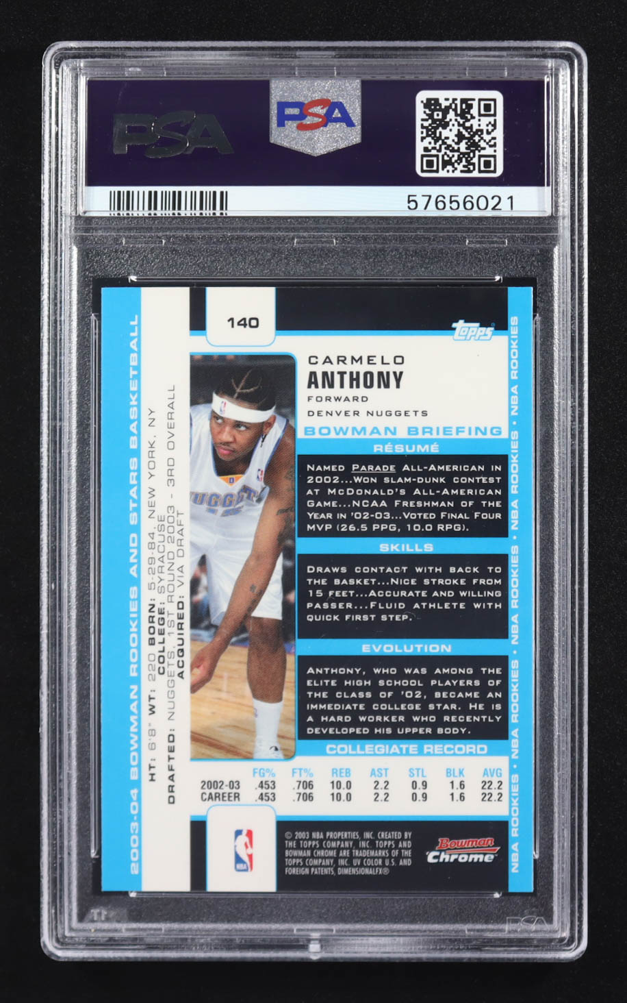 Carmelo Anthony 2003 Bowman Chrome Rookies & Stars #140 RC (PSA 8)