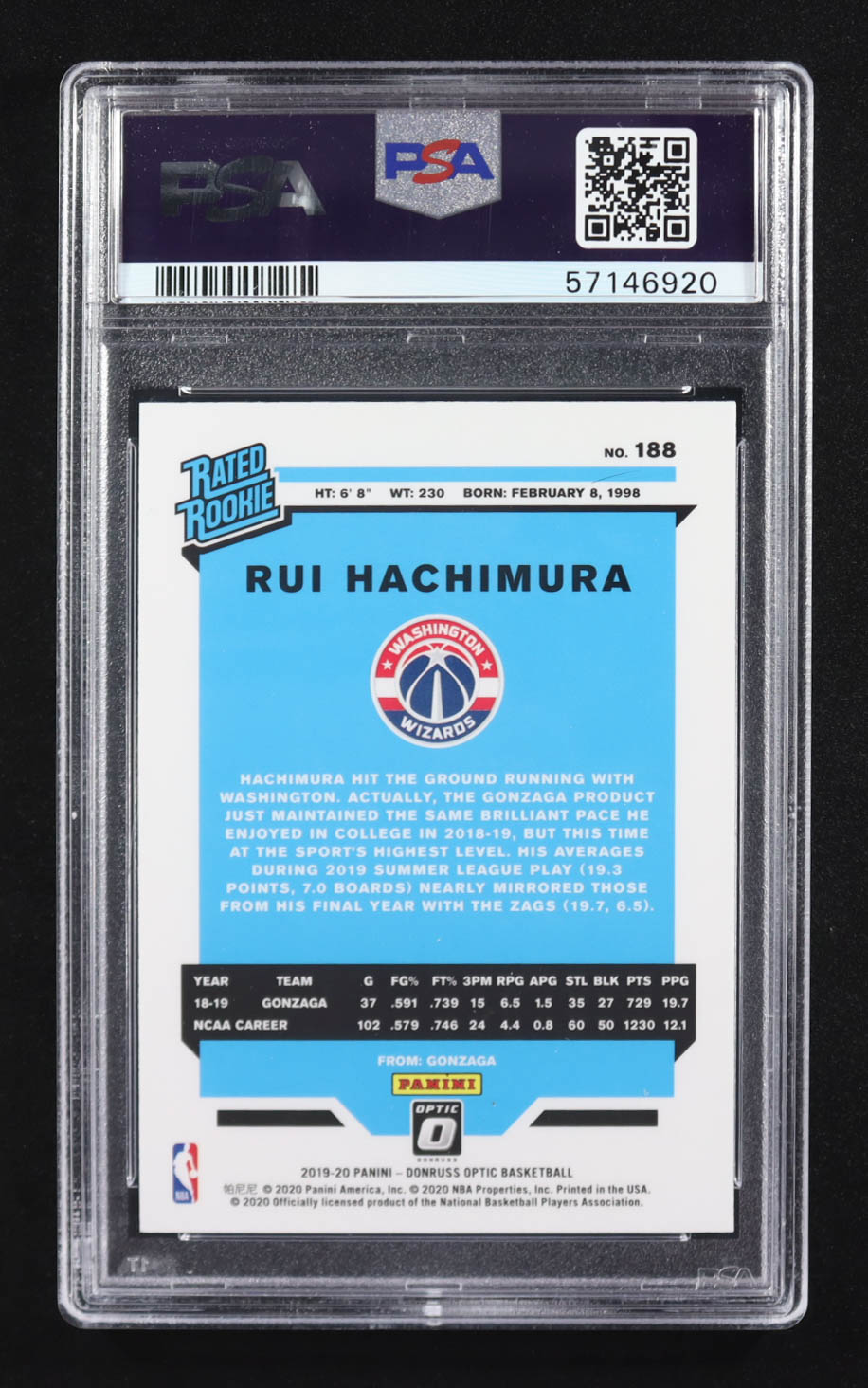 Rui Hachimra 2019-20 Panini Donruss Optic RR #188 RC (PSA 9)