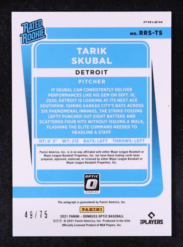 Tarik Skubal 2021 Donruss Optic Rated Rookies Signatures Blue #22 #49/75