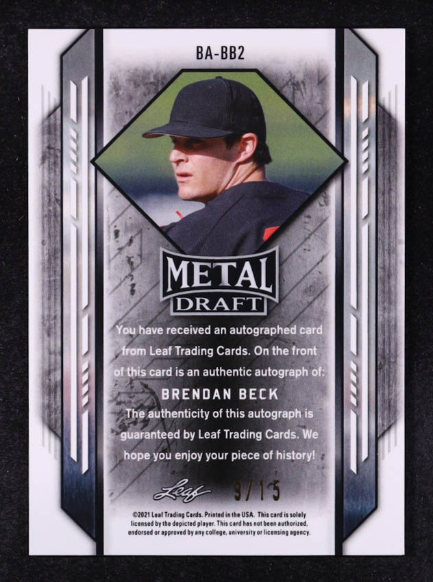 Brendan Beck 2021 Leaf Metal Draft Purple Shimmer Autographs #BABB2 #9/15 RC