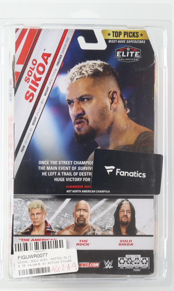 Action figure measures approximately 6" in height and is hand-signed on the packaging by Solo Sikoa.