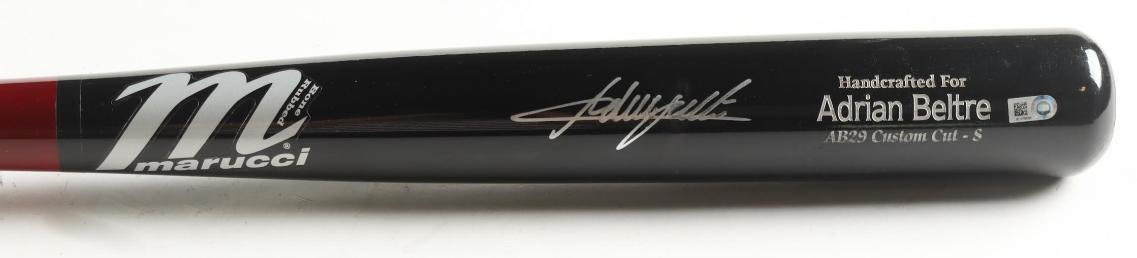 Marucci player model baseball bat. Hand-signed by Adrian Beltre (Texas Rangers, HOF). Please note, there is scuffing on the bat.