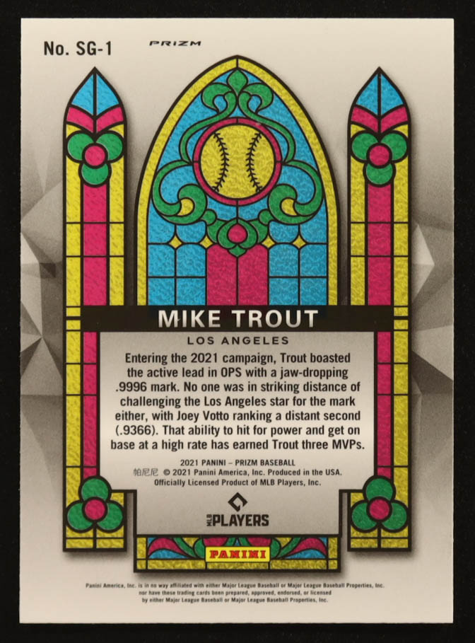 Mike Trout 2021 Panini Prizm Stained Glass Prizms Red White and Blue #1