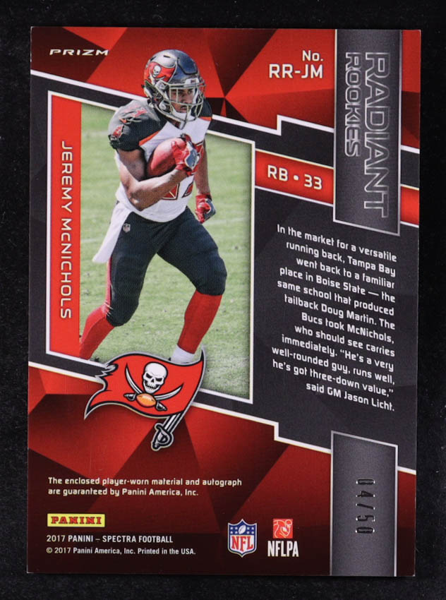 Jeremy McNichols 2017 Panini Spectra Radiant Rookie Patch Signatures Neon Blue #9 #04/50 RC