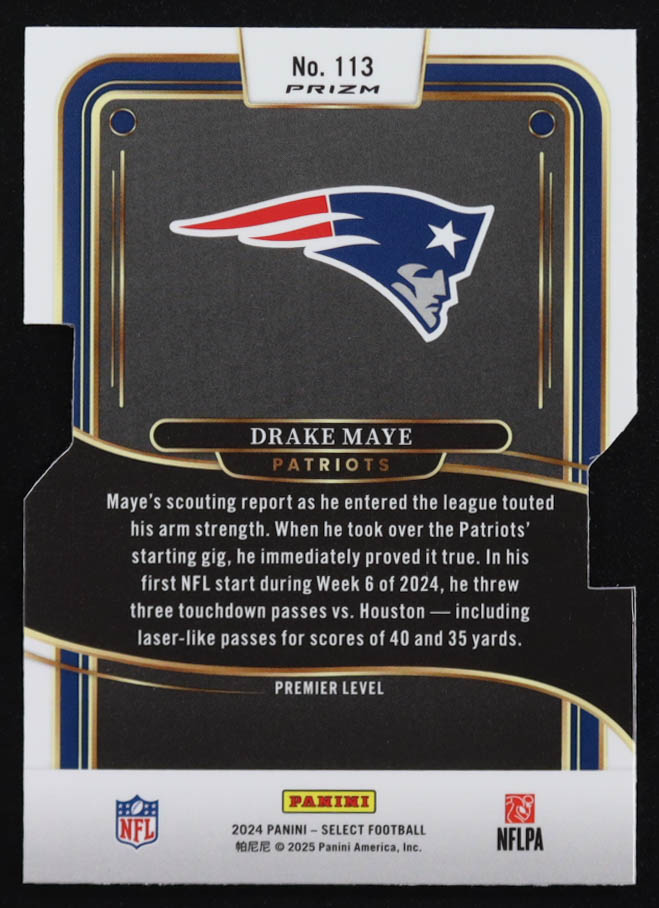 Drake Maye 2024 Select Prizm Silver Die Cut #113 RC