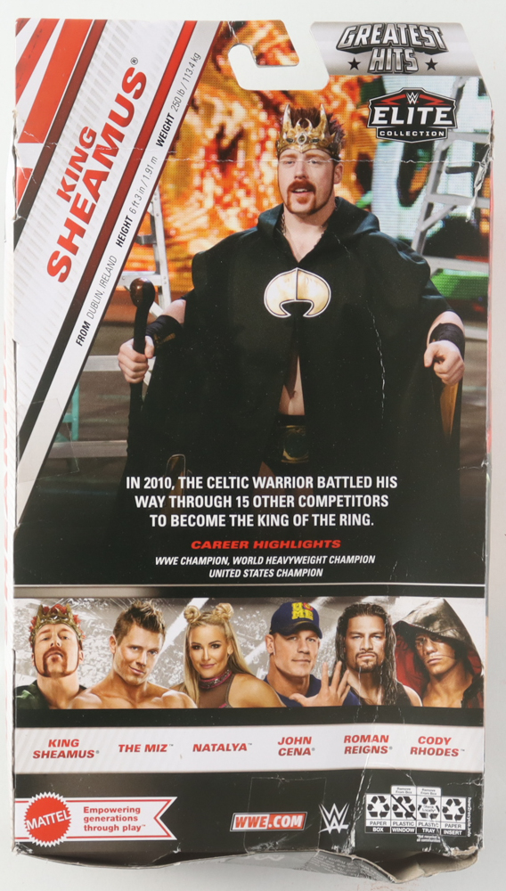 Action figure measures approximately 6" in height and is hand-signed on the packaging by King Sheamus.