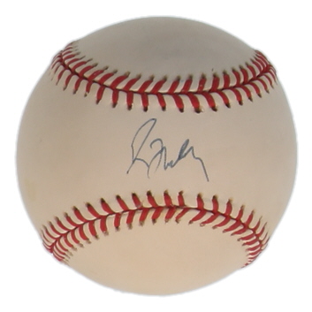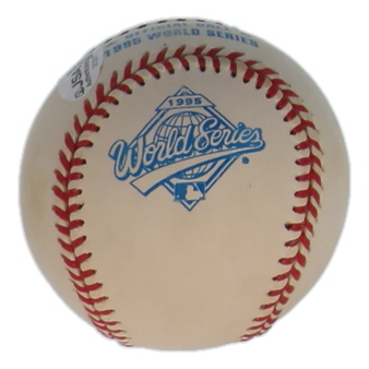 Rawlings Official 1995 World Series Baseball. Hand-signed by Greg Maddux (Atlanta Braves, HOF). Please note, the baseball is naturally toned and stained.