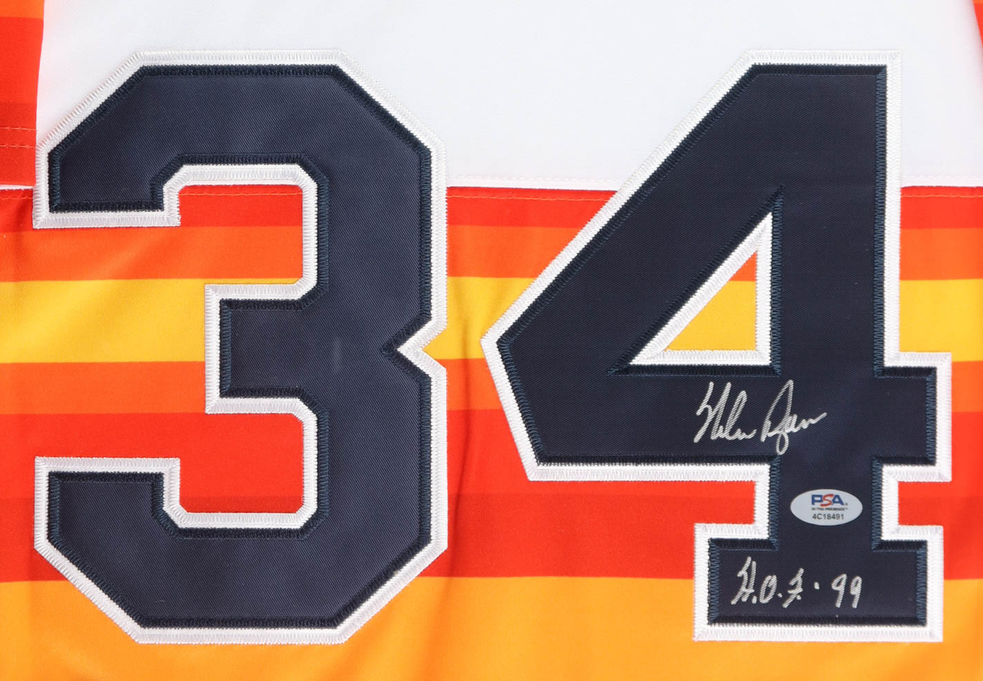 Nolan Ryan Signed Custom Framed Jersey Display Inscribed "HOF 99" with HOF Pin (PSA)