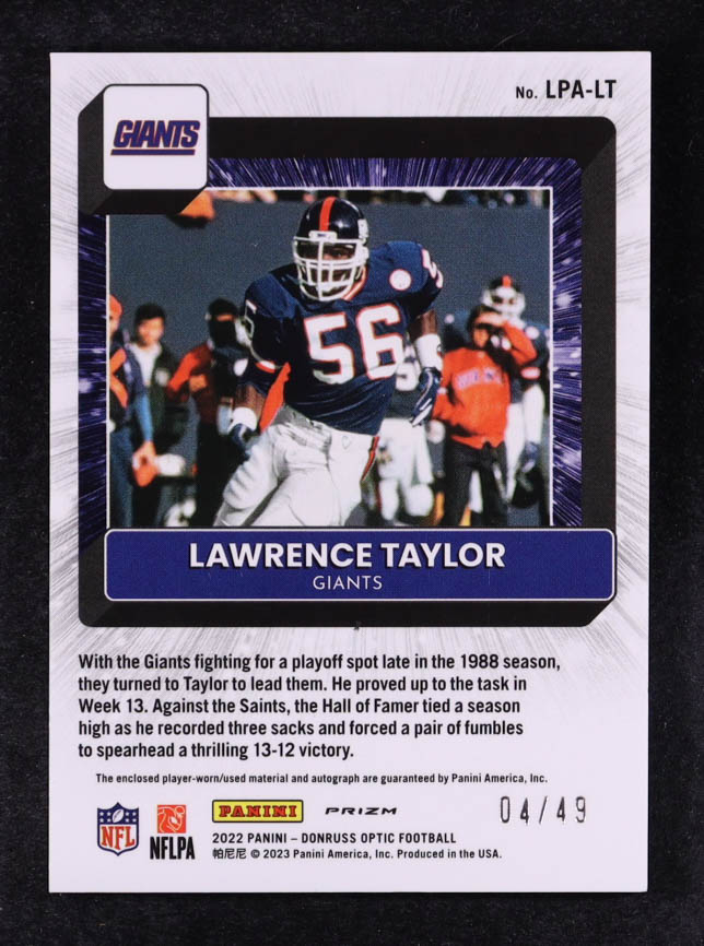 Lawrence Taylor 2022 Donruss Optic Legendary Patch Autographs #9 #04/49