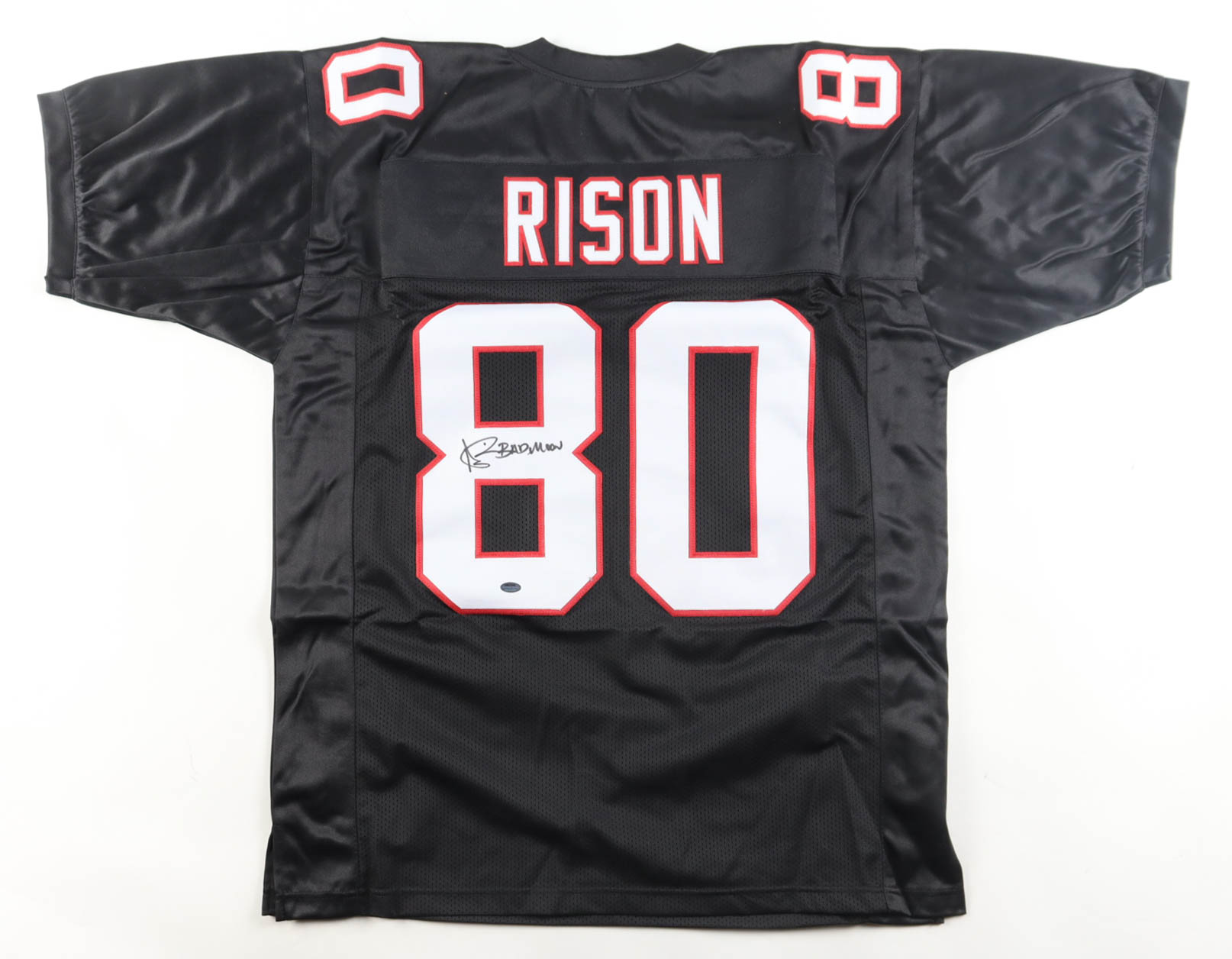 Custom jersey with everything sewn on, size XL. Hand-signed and inscribed by Andre Rison.