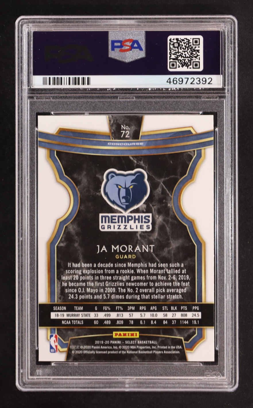 Ja Morant 2019-20 Select #72 RC (PSA 10)