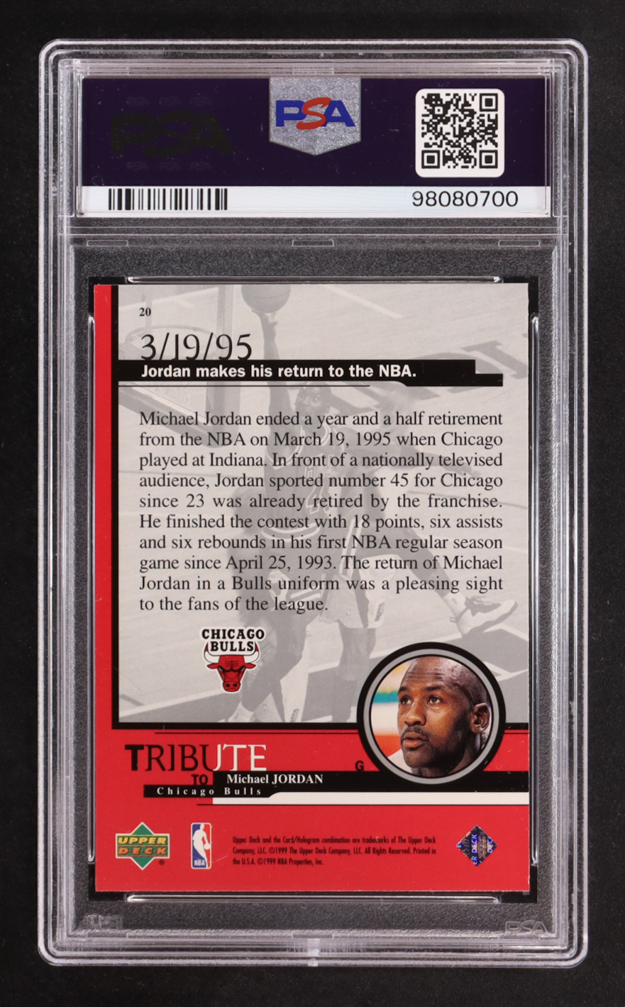 Michael Jordan 1999 Upper Deck Tribute to Michael Jordan #20 Return to the NBA (PSA 9)