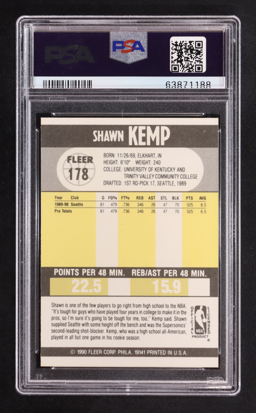 Shawn Kemp 1990-91 Fleer #178 RC (PSA 10)