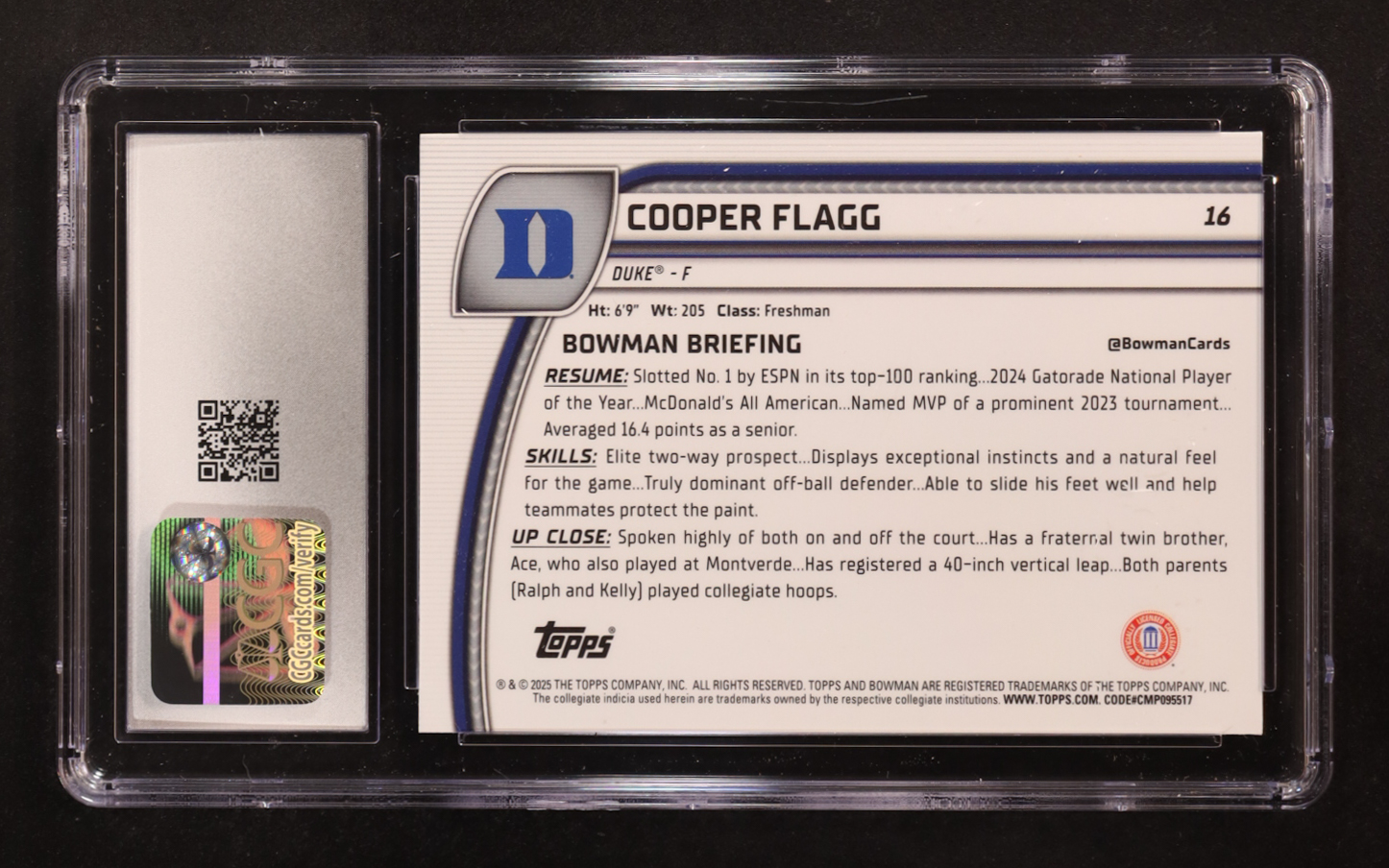 Cooper Flagg 2024-25 Bowman Chrome University #16 RC (CGC 10)