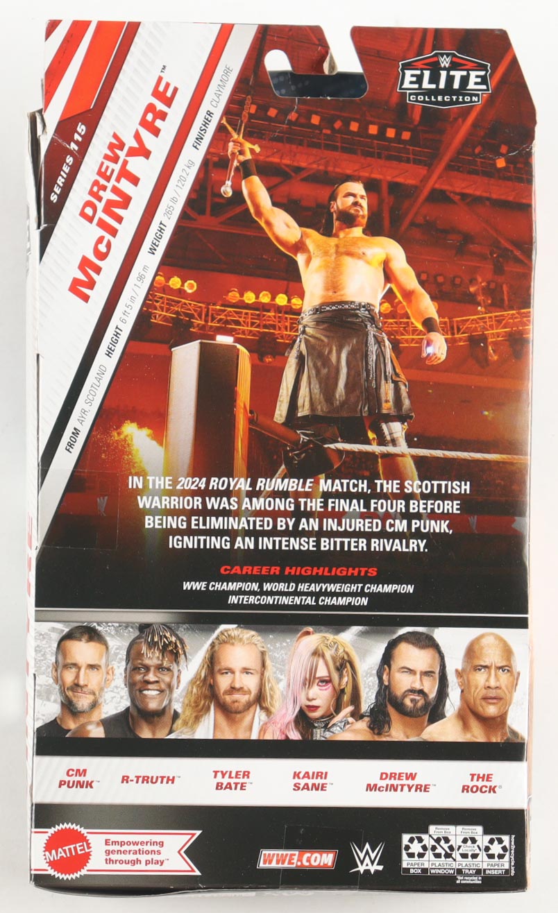2024 Mattel WWE Elite Collection Series 115 action figure measures approximately 6" in height and has been hand-signed on the packaging by Drew McIntyre. Please note, the corners and edges of the box are creased and torn. See photos for more detail regarding the condition of the item.