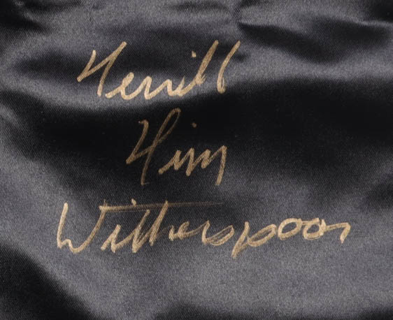 Title boxing shorts, size L. Hand-signed by Tim Witherspoon.